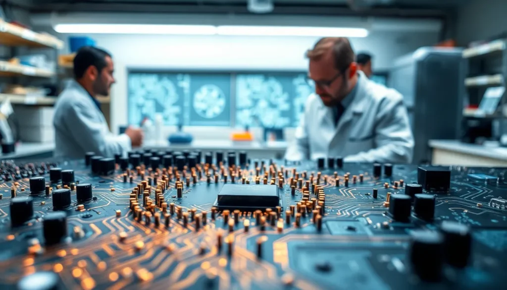 Various hardware advancements enhance neuromorphic computing’s effectiveness. IBM’s TrueNorth chip exemplifies this progress, featuring one million programmable neurons capable of real-time processing. Another key innovation is Intel’s Loihi chip, which utilizes asynchronous event-driven architectures for energy-efficient computation. These chips mimic synaptic connections, allowing for robust neural communication. Additionally, spiking neural networks rely on voltage spikes to mimic brain activity, enhancing performance for complex tasks. These hardware innovations pave the way for new applications in artificial intelligence and robotics.